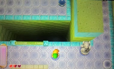 Let yourself then fall again and the skin adjacent to the northern passage again on the now pink switch - thus the grid platform is lowered a bit far. Repeats the steps just described and let you just lowered the grid up and their then comes through a gear lower to a chest, which can extract 50 Rupees. Go back to the central room and pushes you right to the wall, you then move to the right to reach a ledge with another style similar grid platform. Bring them in position to create you a little shortcut.