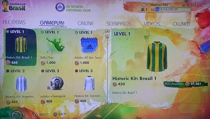 FIFA World Cup Brazil 2014 is a game series, and so it could not have access to EA Sports FC, virtual "store" where the gamer can unlock extra content with "coins" to win according to your performance in the game. And there are lots of interesting things to be unlocked.