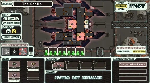 How to unlock this ship: you will need a Engi in your crew and then go to a Engi system where you must solve two quests (random encounter). You start with no missile in the ship and you will have a basic equipment but two weapons which increases for a single vessel: the titanium casing system.