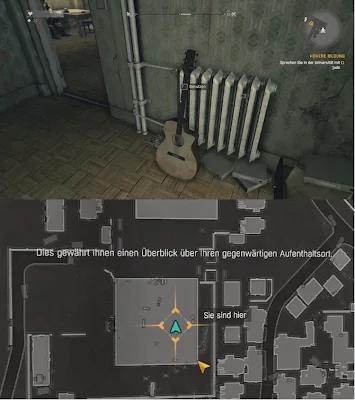 In Dying Light you can also find and play a guitar. It is located in your neighborhood in the tower. So first take the elevator up and then search for the bed. At the heating rejects the guitar.