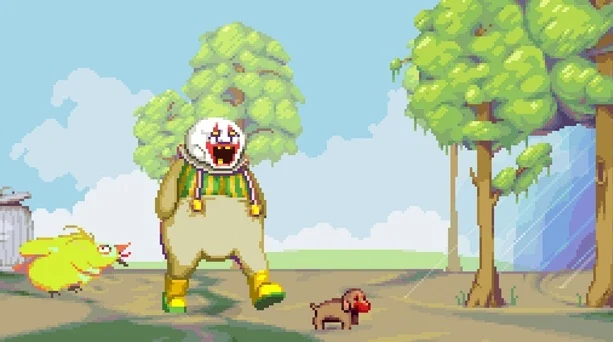 The odyssey of the misunderstood Clowns Dropsy starts with a brief introduction to the recent events of his life. Through a tragic accident Dropsy loses his beloved mother in the fire. The townspeople believe that Dropsy has accidentally killed his mother. Once you are able to control the tragic hero, you have to run this by a bizarre, almost psychedelic dream from left to right. Once you have come to the end of the dream, you wake up and return to the real world.