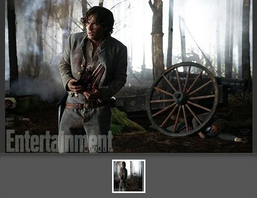 While the first part of the season 7 of The Vampire Diaries ended, production has unveiled a new photo of Damon, immersed in full Civil War.